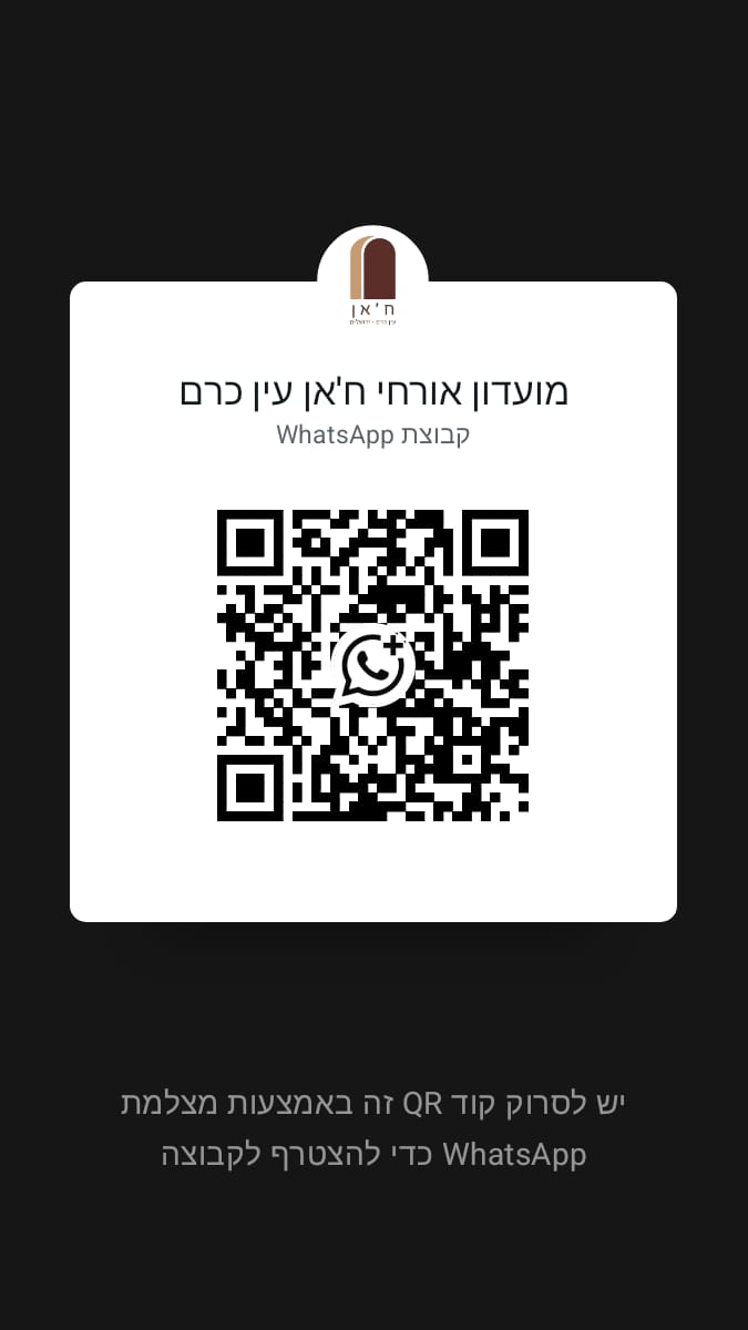 להצטרפות לקבוצת הווצאפ השקטה שלנו, בה נעדכן על מבצעים והזדמנויות מיוחדות לחברי הקבוצה ואירועים בעין כרם וירושלים הקליקו כאן: https://chat.whatsapp.com/DjGxdulDJsaIi6rg9kgr17?mode=gi_t